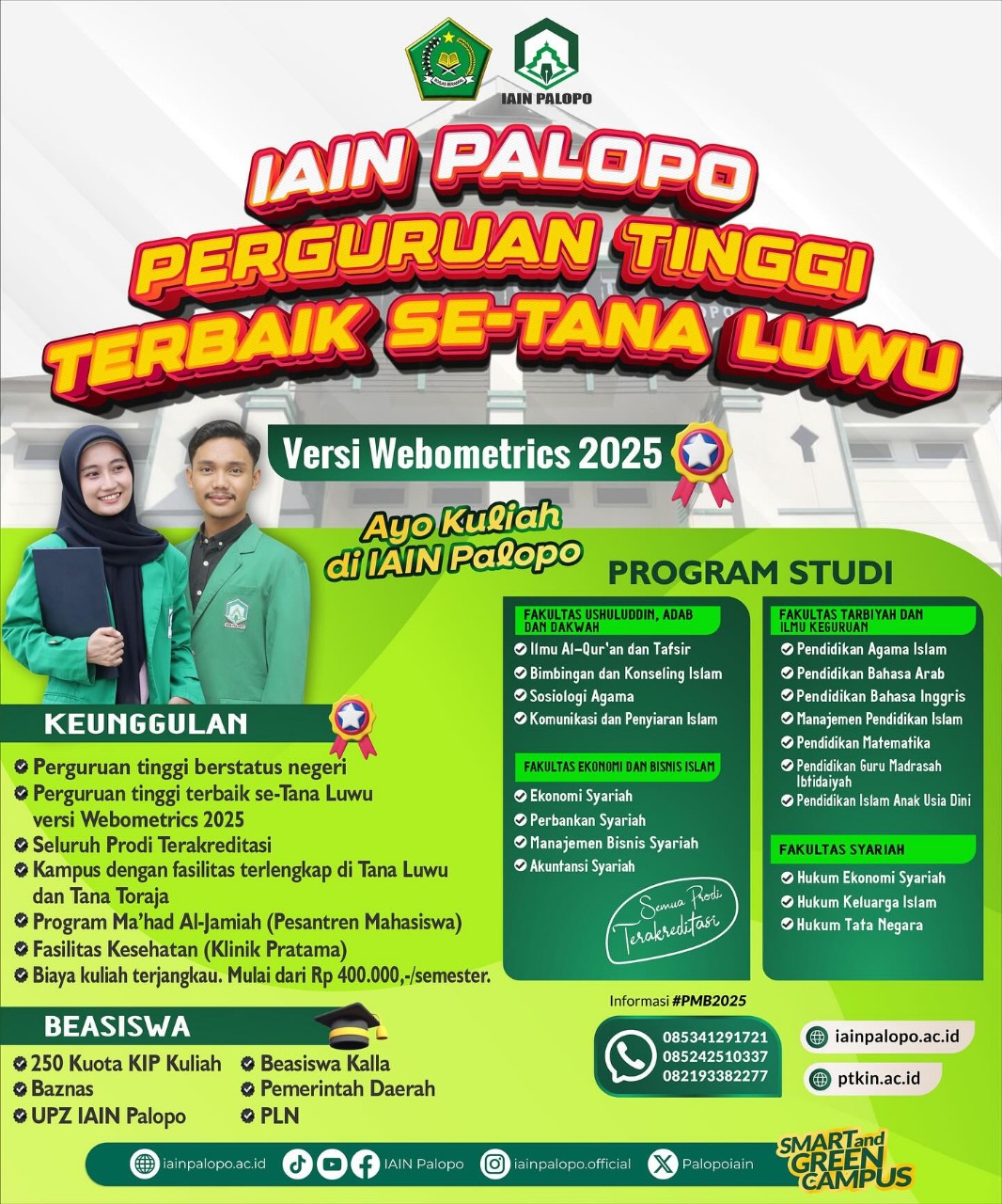 Program Studi Pendidikan Bahasa Inggris IAIN Palopo pertama kali berdiri pada tahun 1999 dengan Program Diploma 3, kemudian dikembangkan menjadi Program Sarjana (S1) pada tahun 2003 berdasarkan izin penyelenggaraan oleh Dirjen Kelembagaan Islam No DJ.11/211/2003 Tanggal 10 Juli 2003, dan terakreditasi dengan Predikat B berdasarkan Surat Keputusan Kepala BAN PT No. 1262/SK/BAN-PT/Akred/S/XII/2015. Untuk info lebih lanjut tekan tombol di bawah.